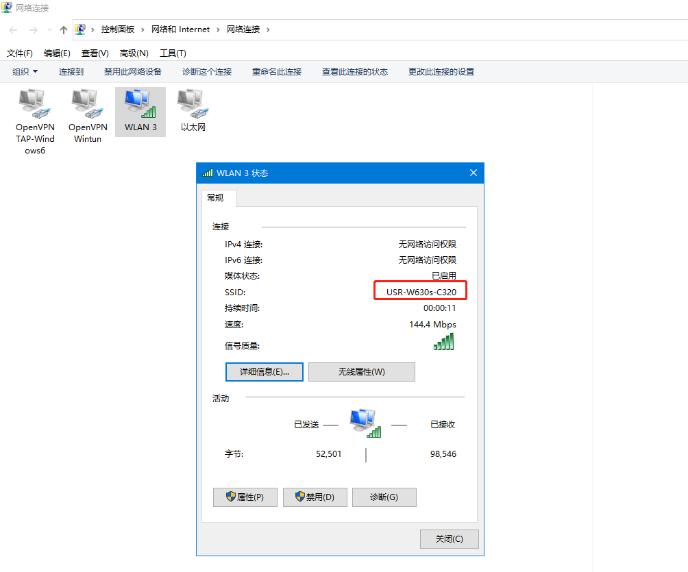 (1)連接USR-W630s 2.4GHZ WiFi,USR-W630s-C320