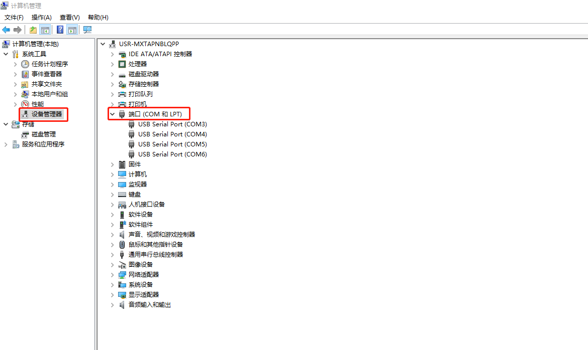 電腦鼠標(biāo)點(diǎn)擊計(jì)算機(jī)管理,右擊,點(diǎn)開設(shè)備管理器,點(diǎn)擊端口,查看STA的USR-W630s的USB-RS232串口線COM口號(hào),COM4。