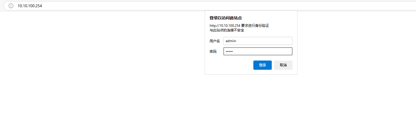瀏覽器輸入10.10.100.254回車進(jìn)入設(shè)備的內(nèi)置網(wǎng)頁(yè),賬號(hào)密碼默認(rèn)都是admin,點(diǎn)擊登入