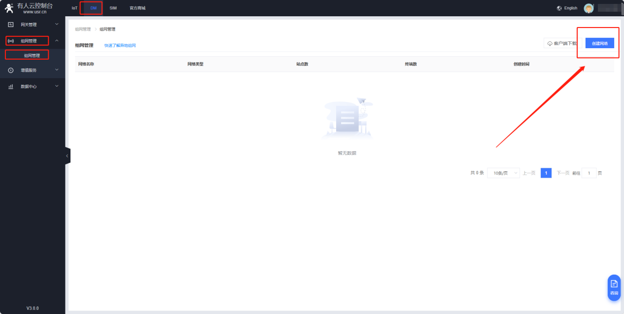 點(diǎn)擊右上角創(chuàng)建網(wǎng)絡(luò)。