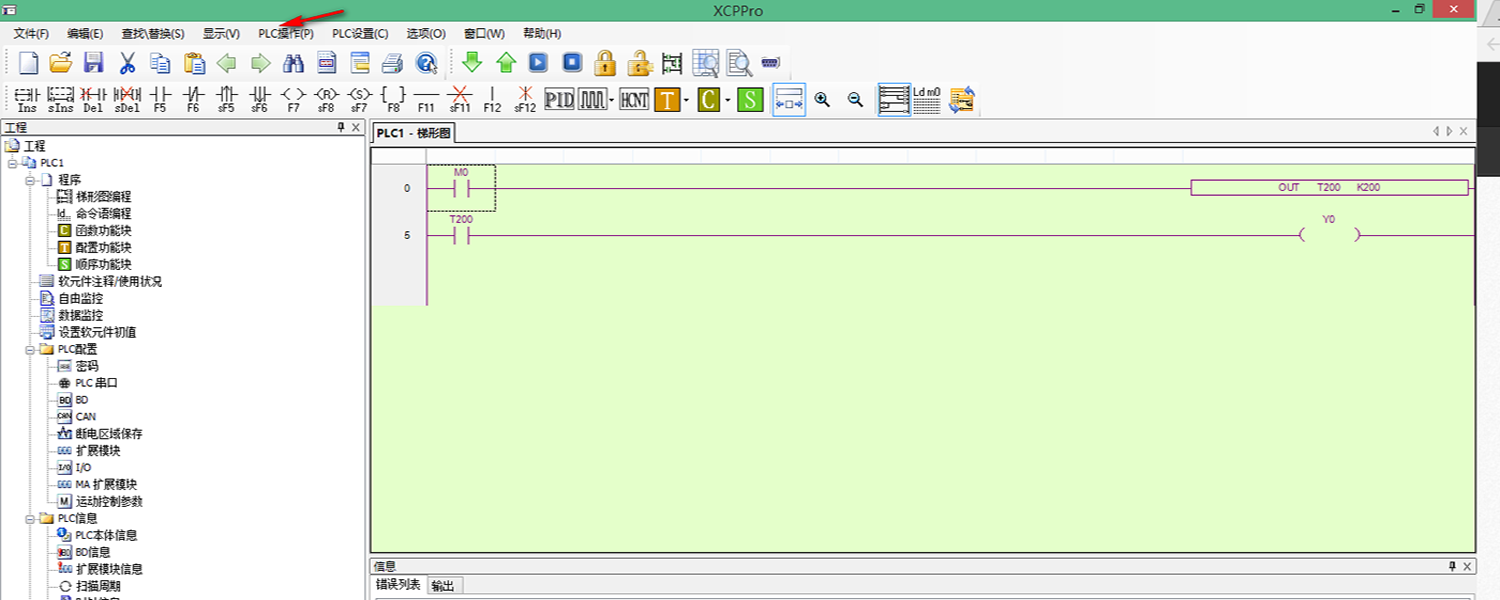 六、點(diǎn)擊“PLC操作”-“上傳用戶程序”,上傳成功會(huì)顯示PLC梯形圖。