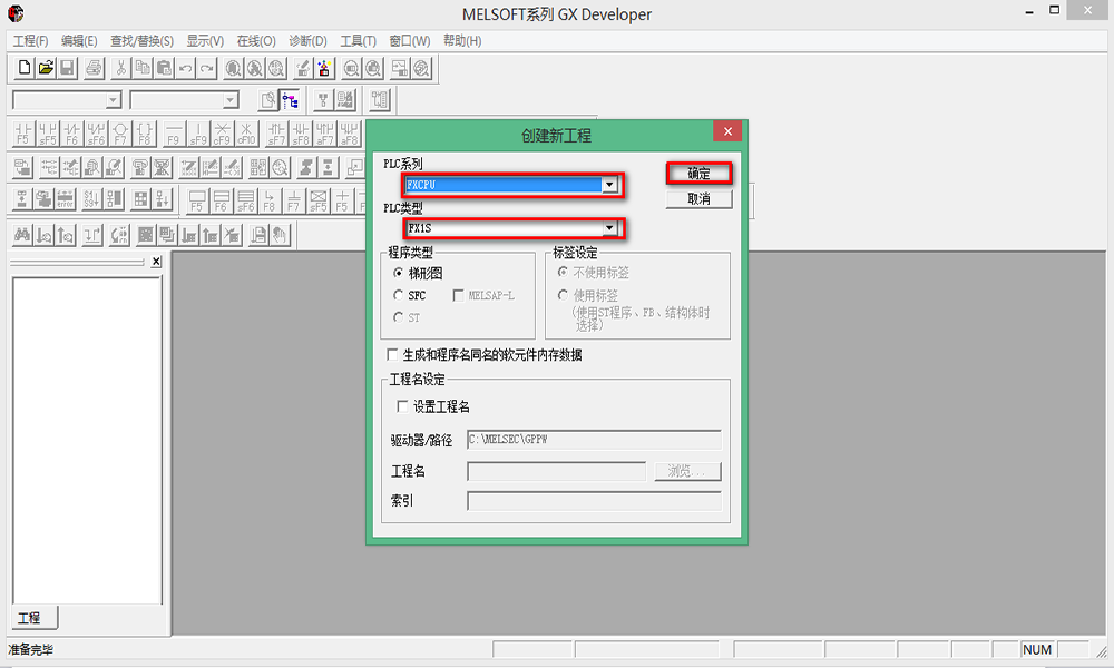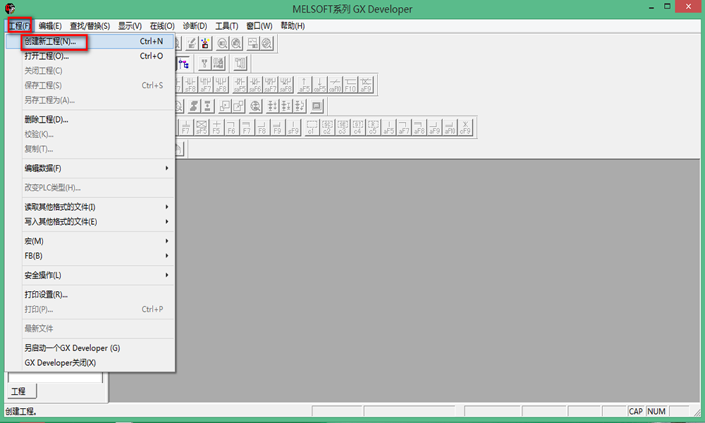 七、打開三菱上位機(jī)軟件GX,點擊“工程-創(chuàng)建新工程”