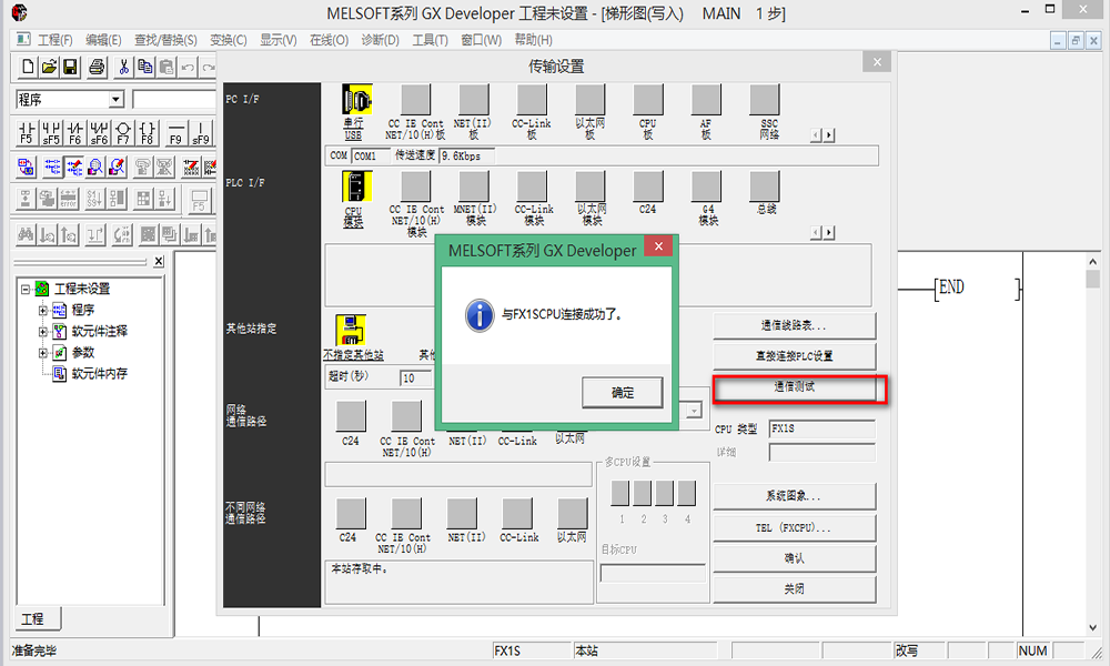 十一、點擊“通信測試”,會顯示與PLC連接成功,然后點擊“確定”