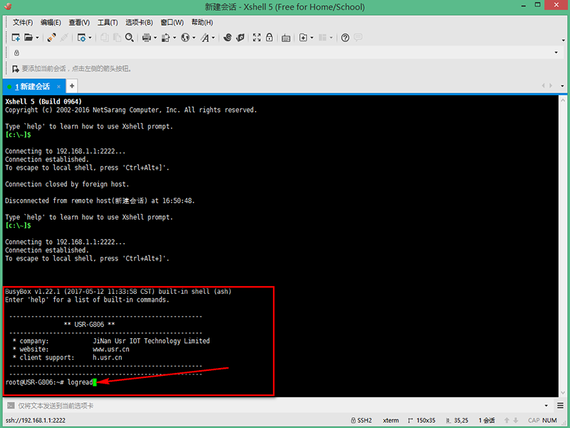 11、出現如下界面,在界面上輸入logread,點擊enter鍵,進行讀取log日志