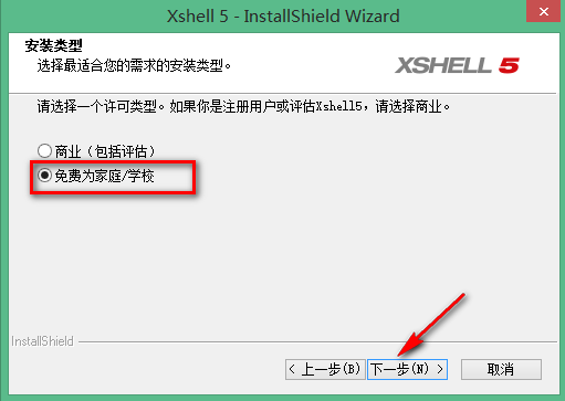 3、安裝軟件時,選為“免費為家庭/學?!?,點擊下一步進行安裝