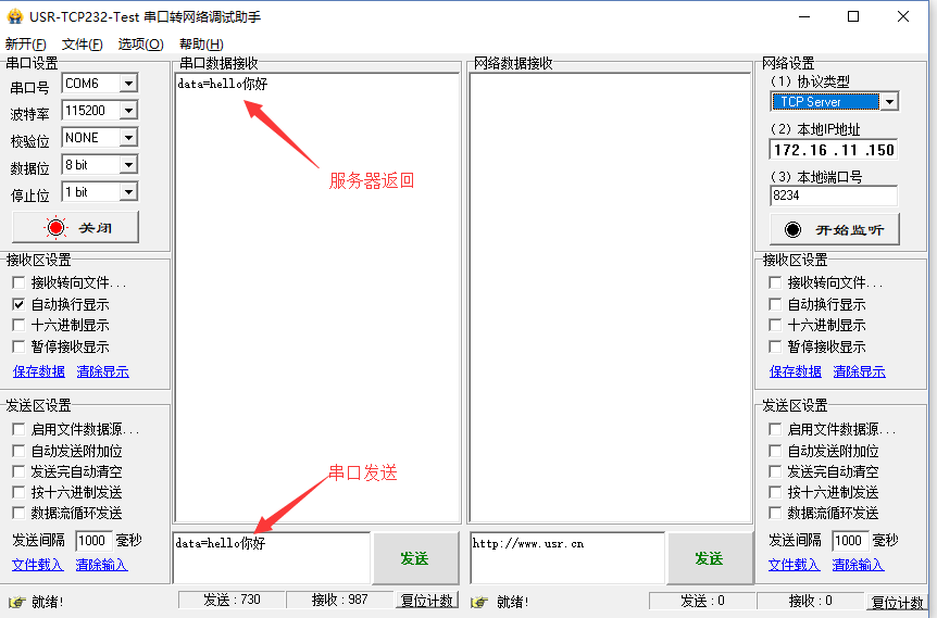 3、發(fā)送data=hello你好,返回數(shù)據(jù):data=hello你好