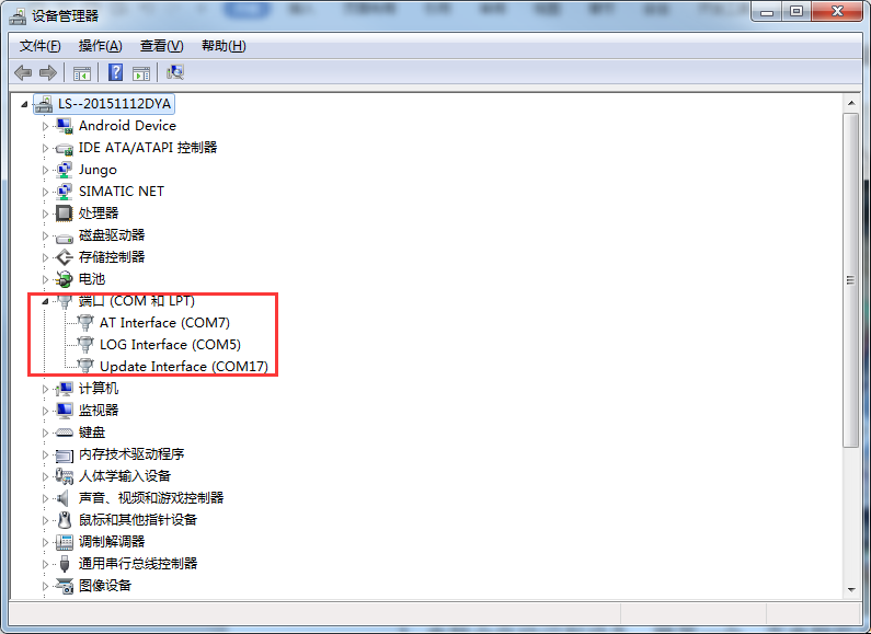 3. 電腦會自動識別設備,稍等一會,在電腦的設備管理器中可以看到相關設備。