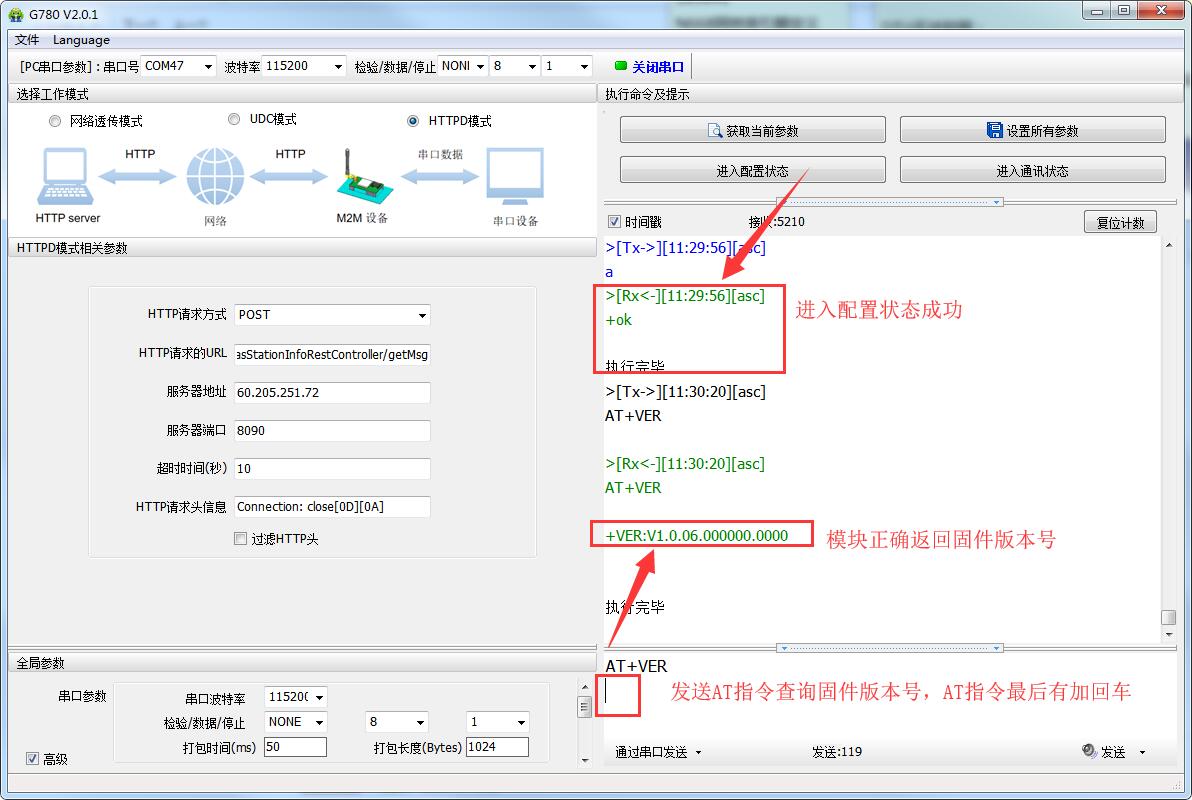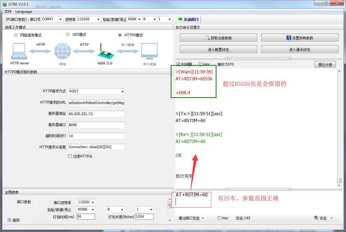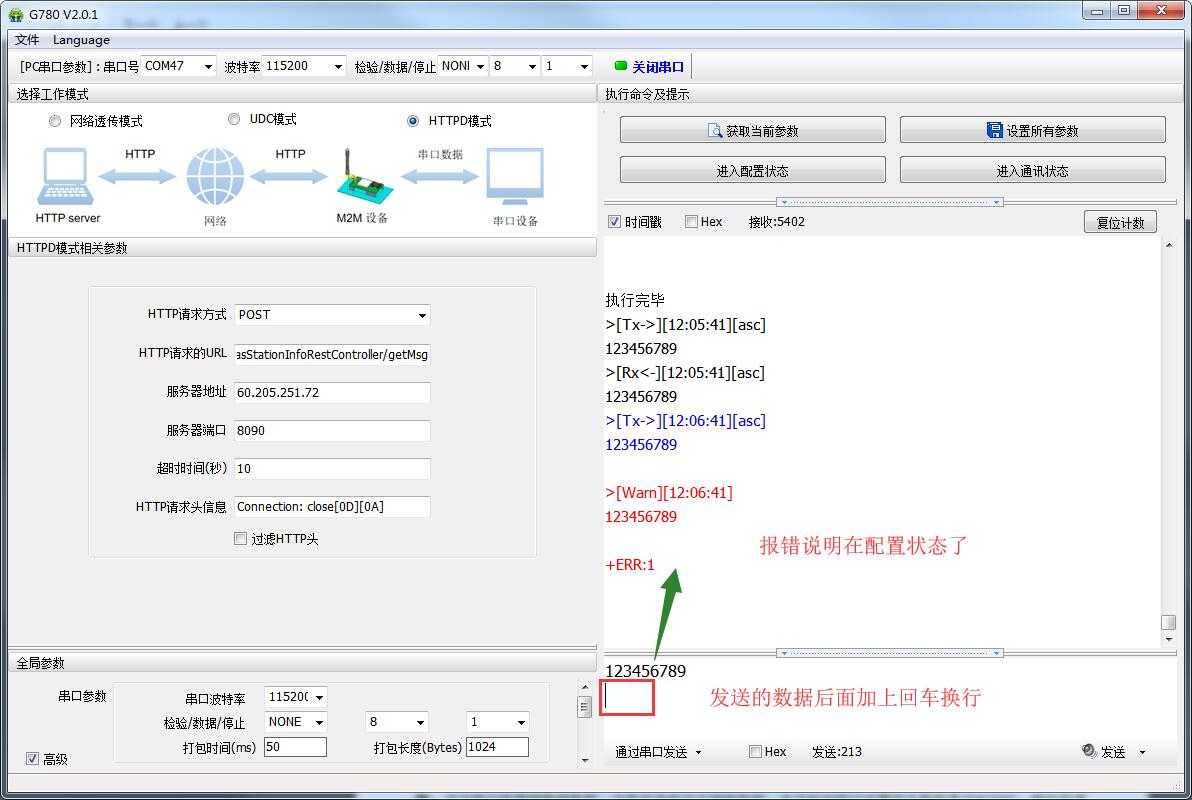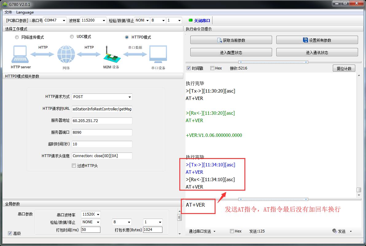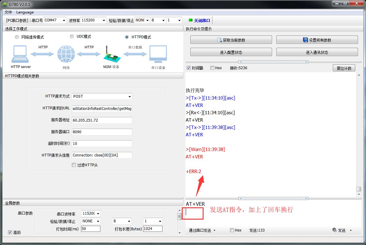 注意:我司設(shè)備發(fā)送AT指令時(shí),AT指令的最后一定要加回車換行