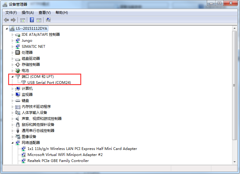 其中串口號可以在電腦的“設備管理器”中查看,見下圖;