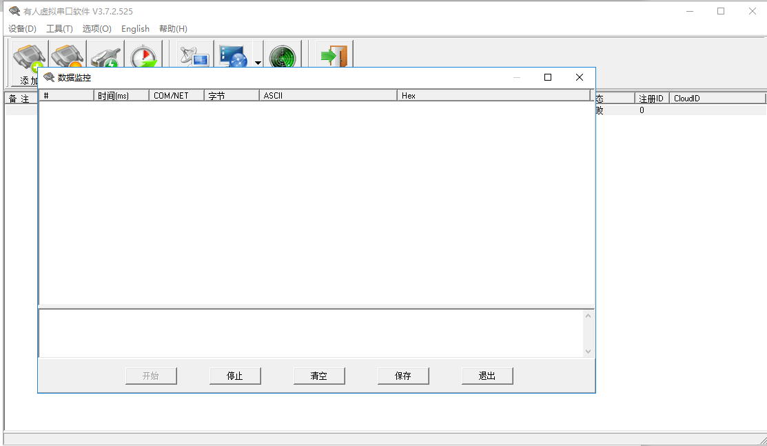 5. 監(jiān)控按鈕:這個(gè)是對(duì)相應(yīng)的虛擬串口的數(shù)據(jù)進(jìn)行監(jiān)控,監(jiān)控?cái)?shù)據(jù)的收發(fā)和內(nèi)容。
