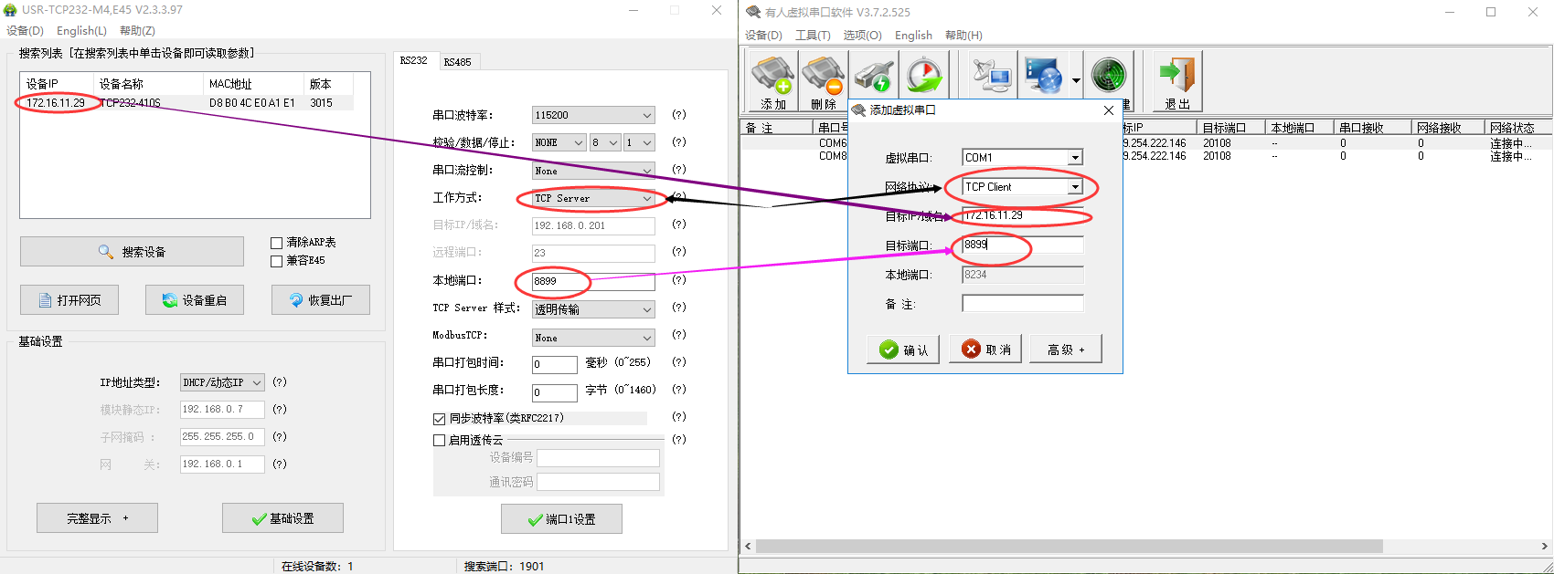 虛擬串口軟件和設(shè)備之間的工作方式,一端作client一端作sever。
