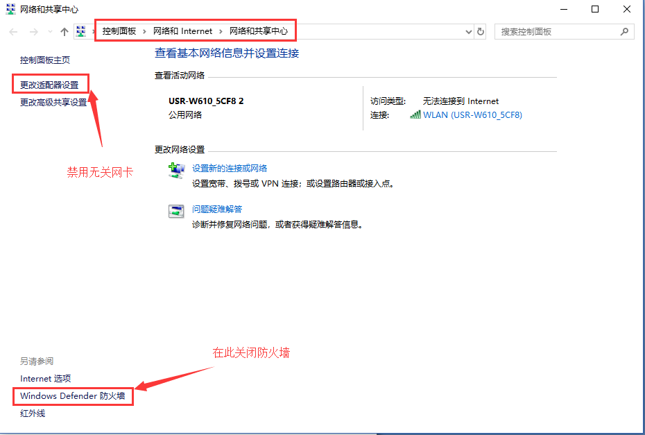 注意:在開始測(cè)試之前,一定要把電腦上的防火墻關(guān)閉,退出殺毒軟件;在適配器設(shè)置中禁用本地網(wǎng)卡、VPN、虛擬機(jī)以及其他的網(wǎng)絡(luò)設(shè)備。