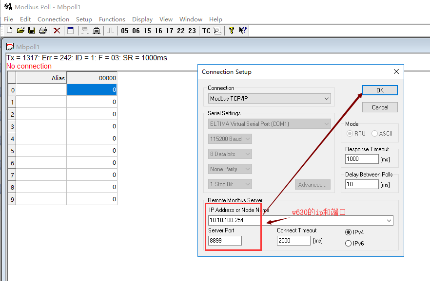 7、打開(kāi)modbus poll和modbus slave軟件,分別設(shè)置參數(shù)