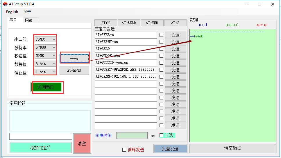 1、用usb轉(zhuǎn)232串口線把w610接到電腦的串口上,選擇正確的串口參數(shù),發(fā)送+++a,進(jìn)入配置狀態(tài)