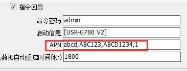 也可以用AT指令來設(shè)置的AT+APN=”usr”,”usr.cn”,”123”