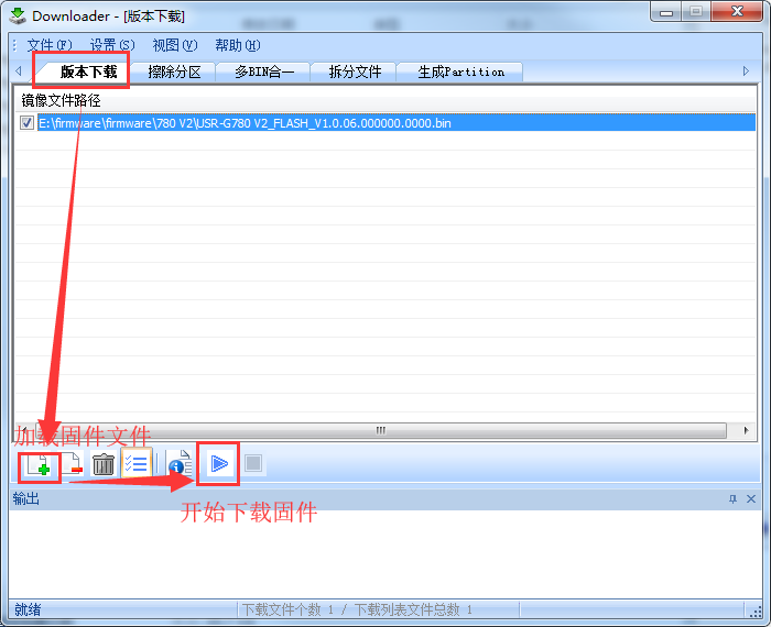 加載固件文件(如果先前有文件,先將先前的文件刪除),然后開始下載固件