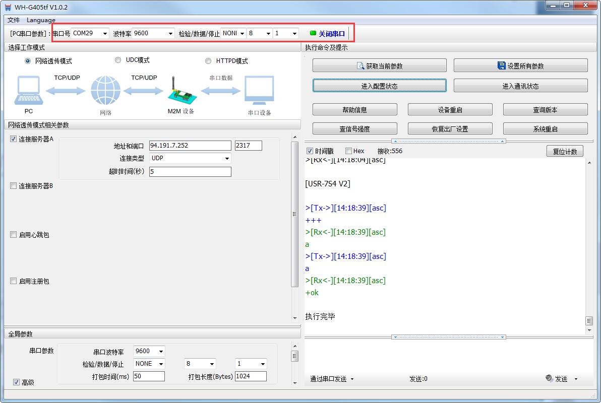 點擊“進入配置狀態(tài)”,如果有收到模塊返回的+ok,說明模塊已經(jīng)成功進入了配置狀態(tài)