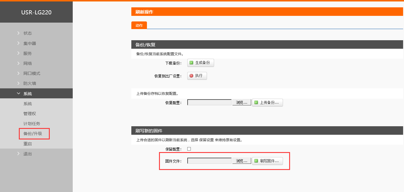 點(diǎn)擊系統(tǒng),選擇備份/升級,選擇固件文件,確定后點(diǎn)擊刷寫固件。