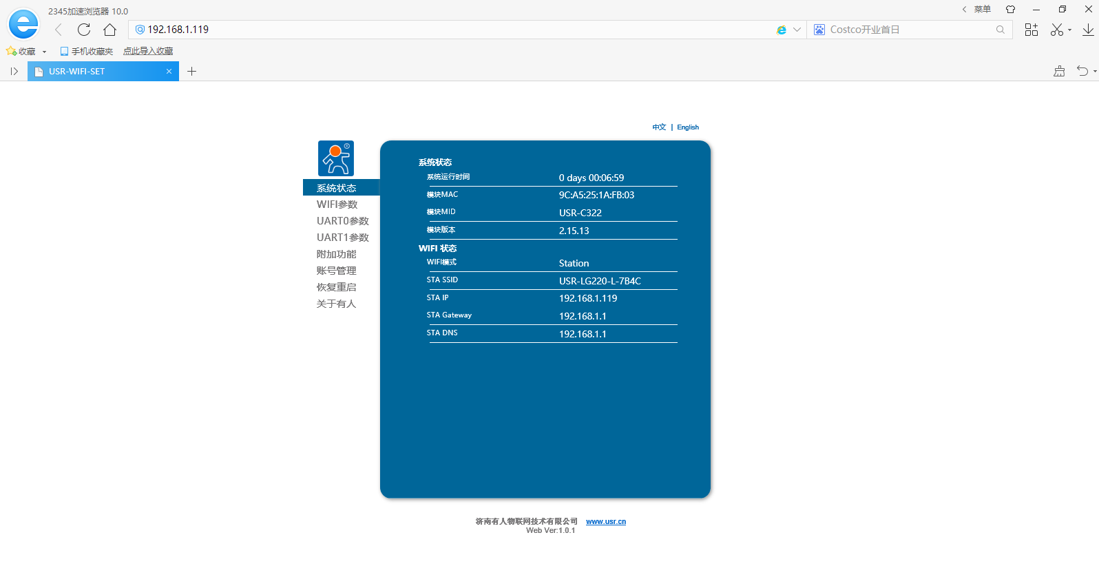 4) 點(diǎn)擊“打開”,便可快速登入模塊的內(nèi)置網(wǎng)頁進(jìn)行配置參數(shù)。