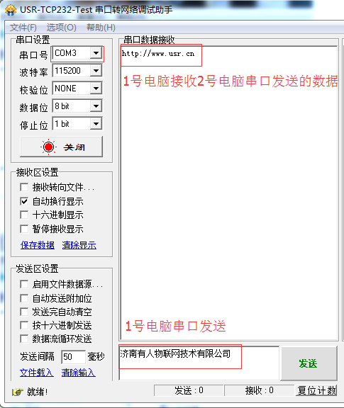 使用串口調(diào)試助手軟件,測試數(shù)據(jù)收發(fā)。