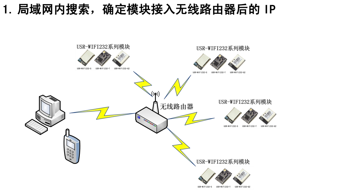 局域網(wǎng)內(nèi)搜索接入路由器的WIFI模塊的IP地址和MAC地址。