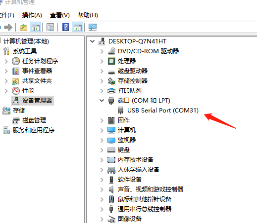 4、在電腦的設(shè)備管理器中,查看模塊在電腦上生成的端口com3
