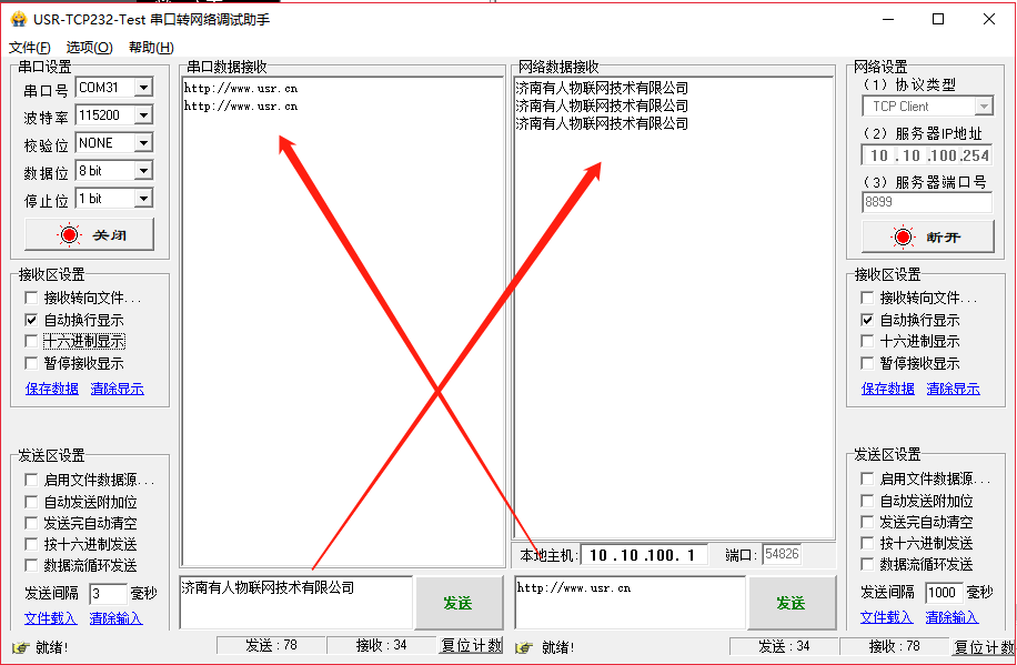 (3) 打開USR-TCP232-TEST軟件測(cè)試