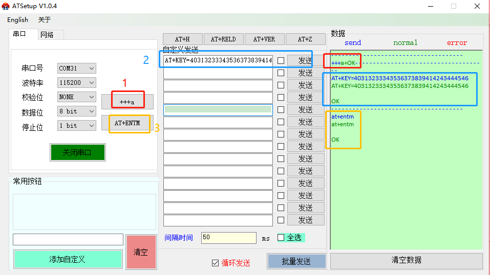 設(shè)置該指令可以使用串口調(diào)試助手配置: