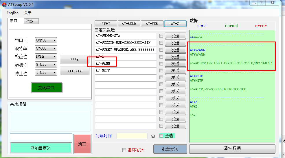 USR-W610用AT指令設(shè)置STA模式連接路由器的方法:
