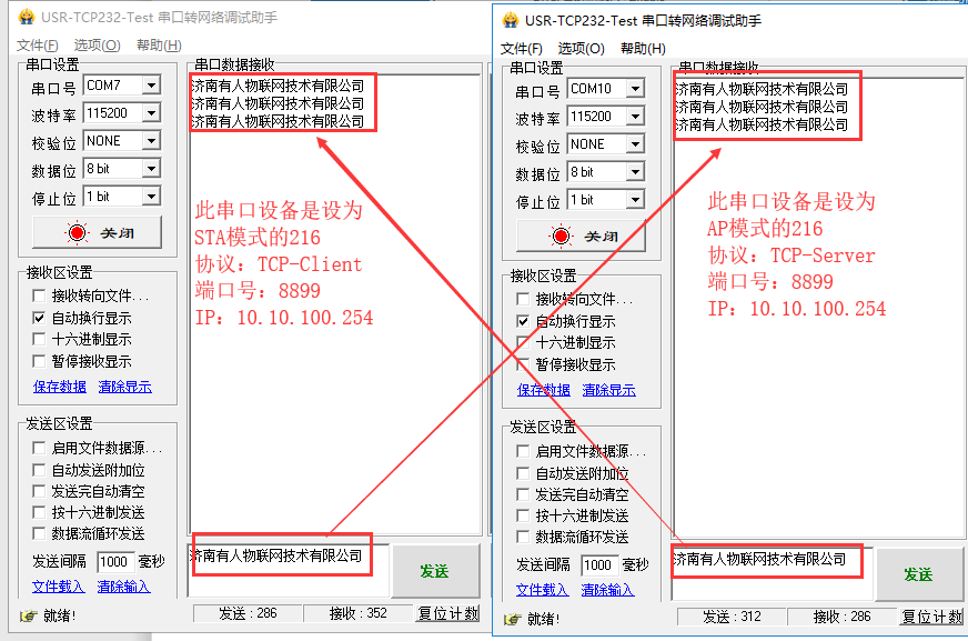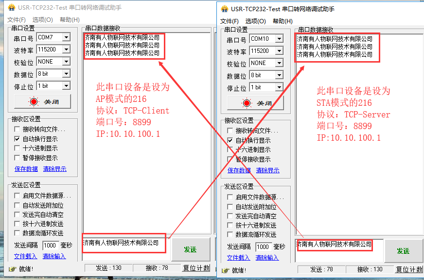 準(zhǔn)備工作:兩個(gè)WIFI模塊C216供電,加裝天線,串口線分別直連電腦