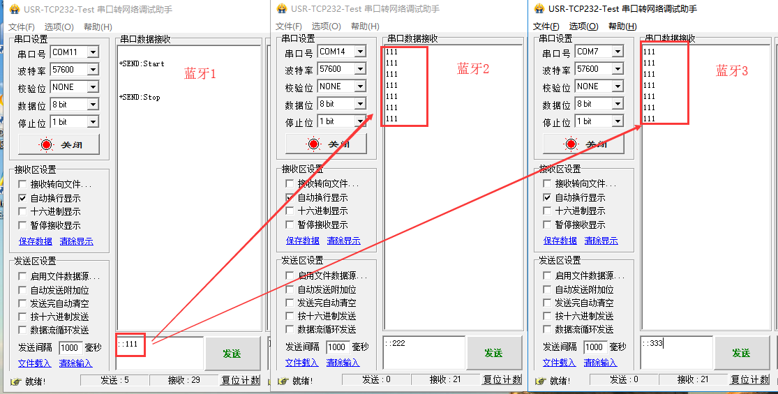 本例以3個藍牙模塊為例。