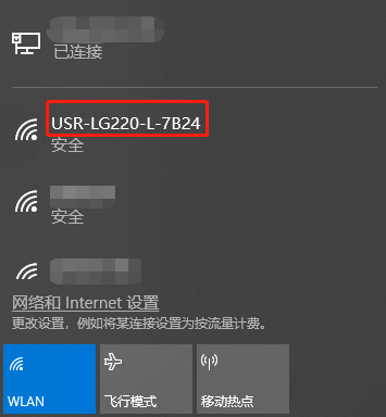 (1)使用集中器配套的電源適配器給集中器供電,集中器上電啟動(dòng)完成后用PC或手機(jī)可以搜索到集中器的WIFI熱點(diǎn),默認(rèn)的SSID為USR-LG220-L-xxxx,xxxx為集中器MAC地址的后四位。
