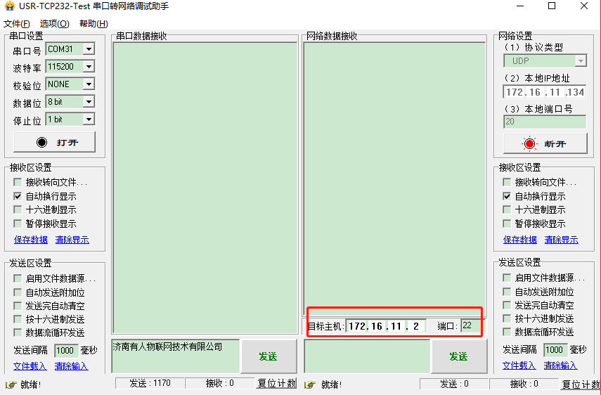 打開USR-TCP232-Test串口轉(zhuǎn)網(wǎng)絡(luò)調(diào)試助,下載地址http://www.lifj.com.cn/Download/27.html