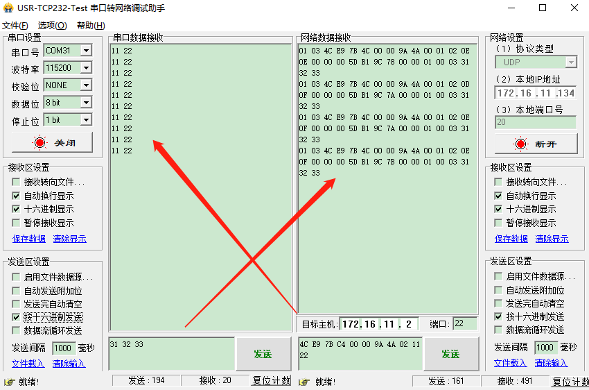 節(jié)點(diǎn)接收有效數(shù)據(jù):11 22