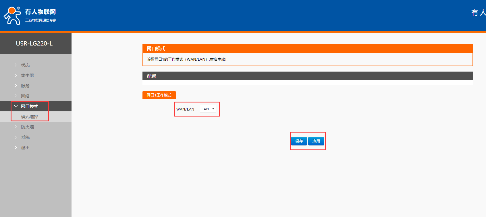 3、修改網(wǎng)口模式