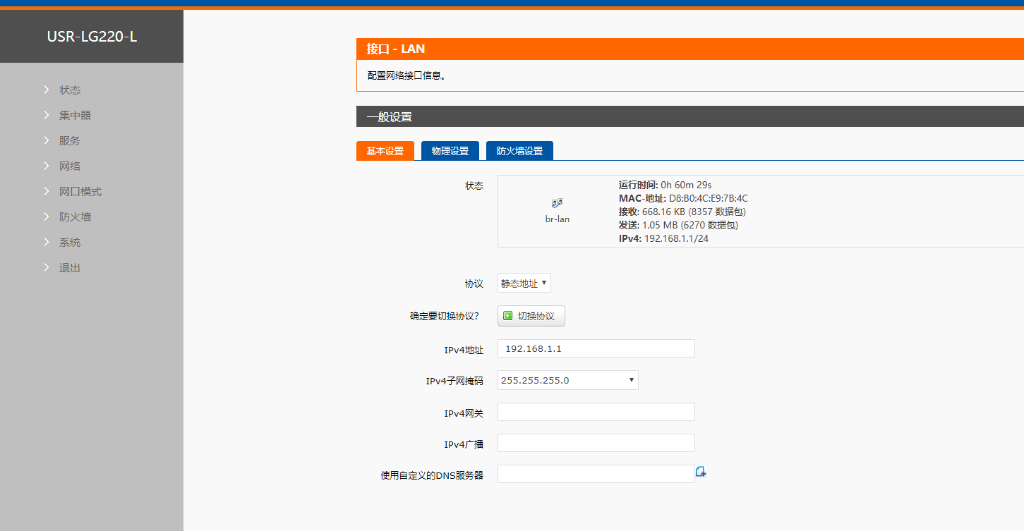 2、進入集中器網(wǎng)頁192.168.1.1,用戶名和密碼都是root
