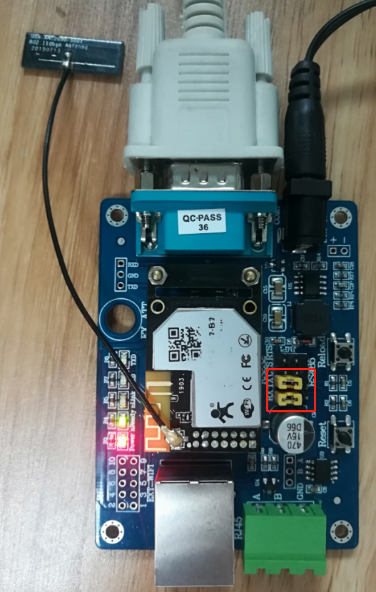 測試使用232串口, 底板跳帽默認位置在485位置,需要修改跳帽安放位置。