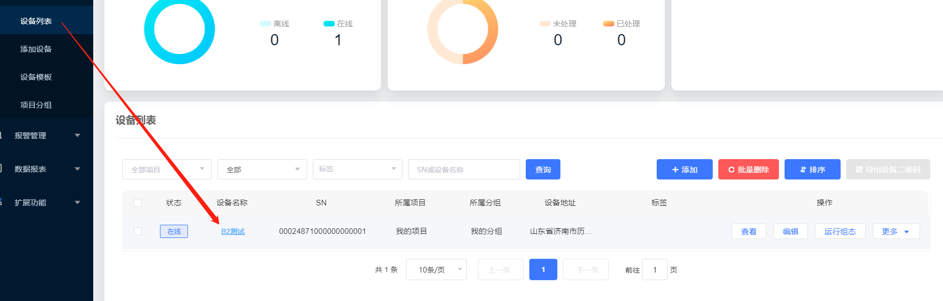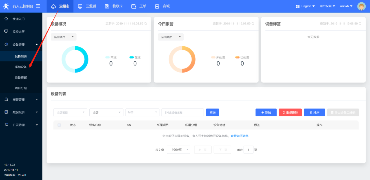 5、本次案例是A2/B2連有人云進行數(shù)據(jù)顯示,可以進入云組態(tài),選擇添加設備;