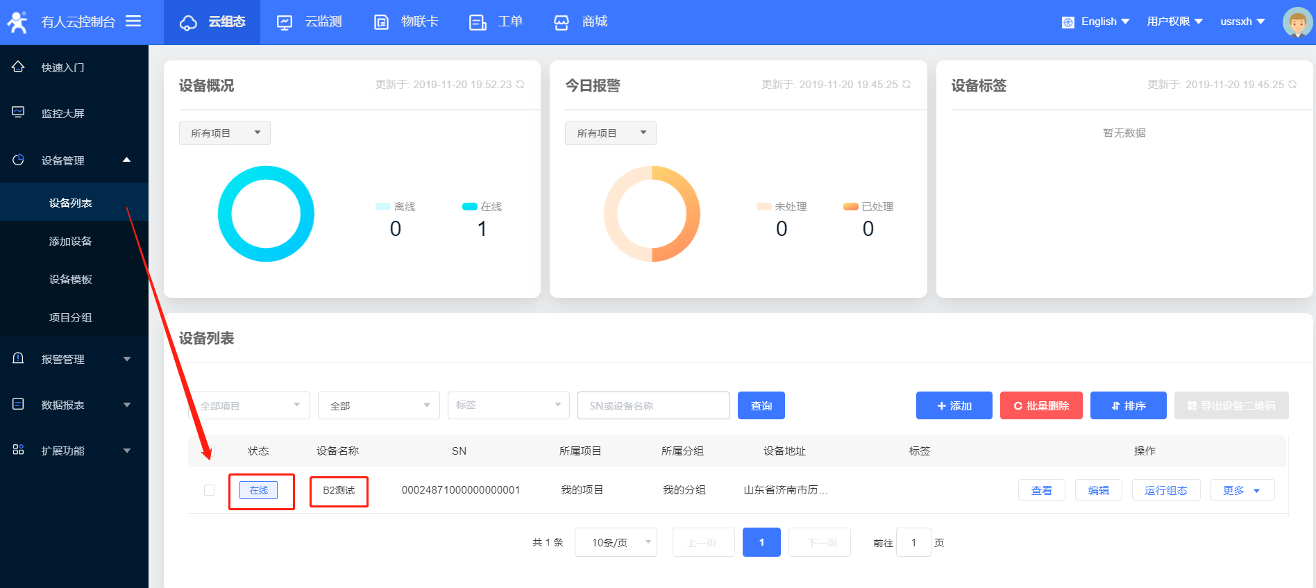 17、設置完所有的參數(shù)要重啟設備,稍等一會,在有人云界面,您會看到設備已經(jīng)上線