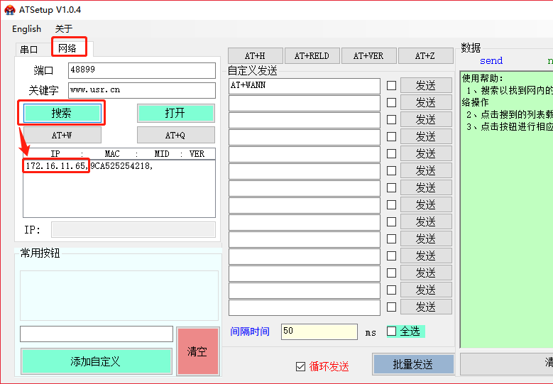 2、串口AT指令模式查詢(xún)模塊WAN口IP。搜索軟件下載鏈接:http://www.lifj.com.cn/Download/91.html