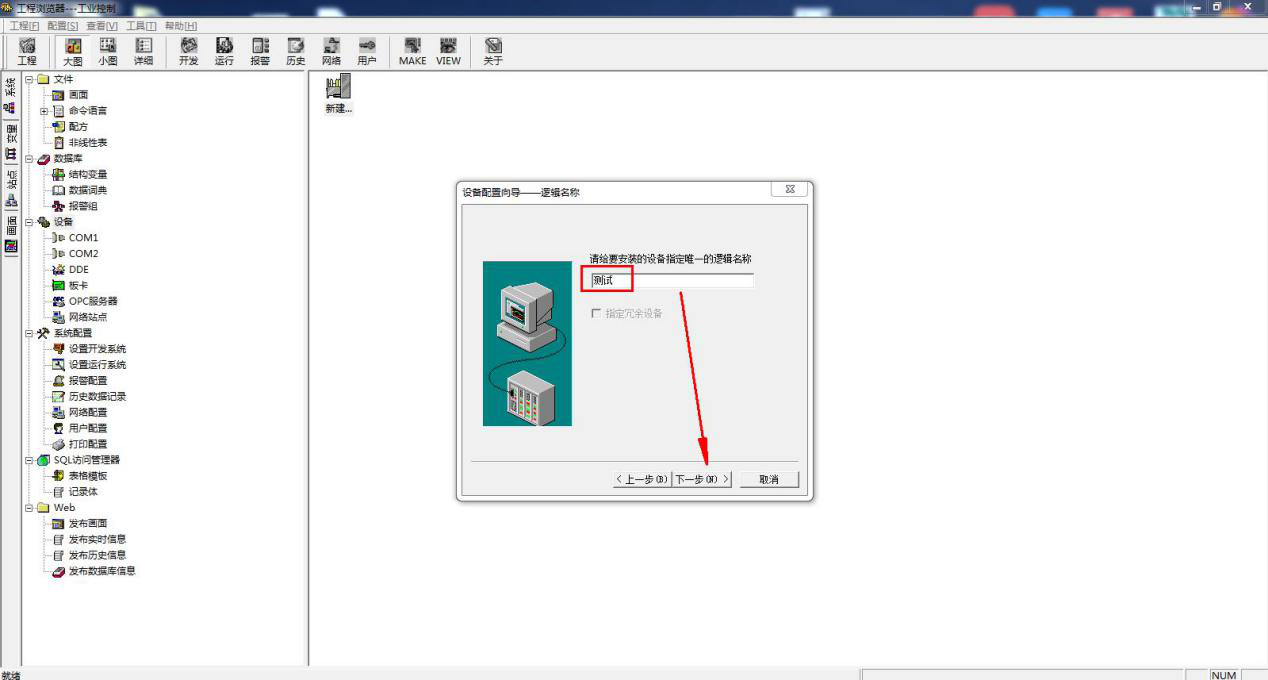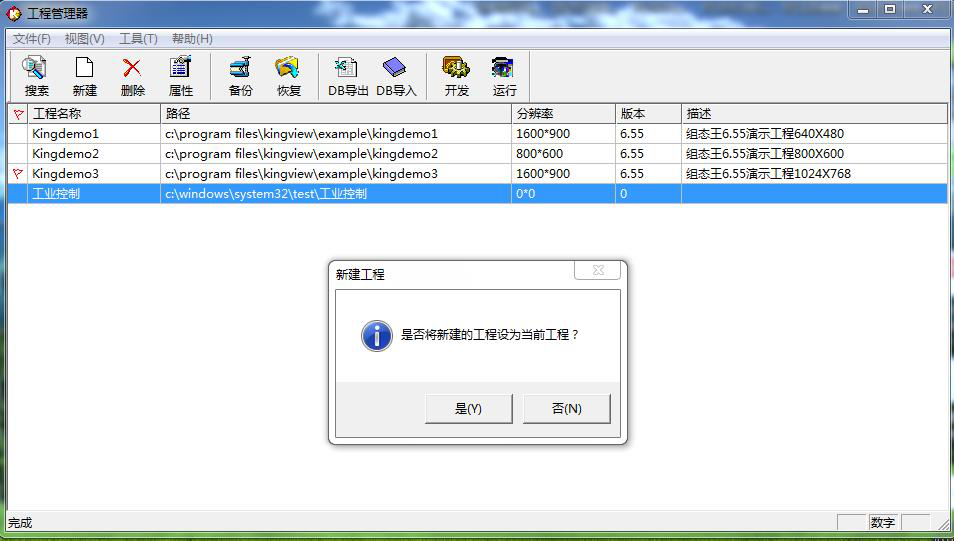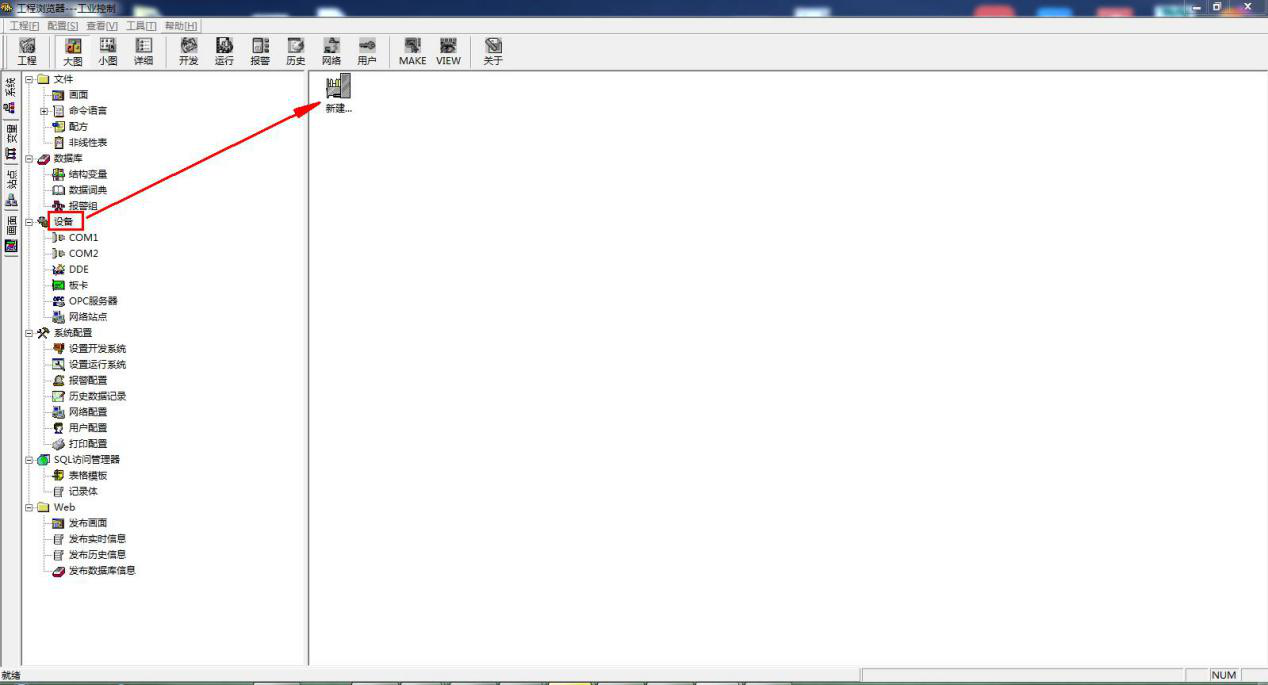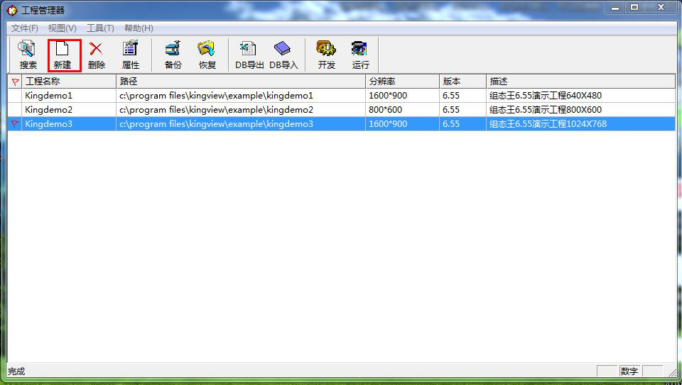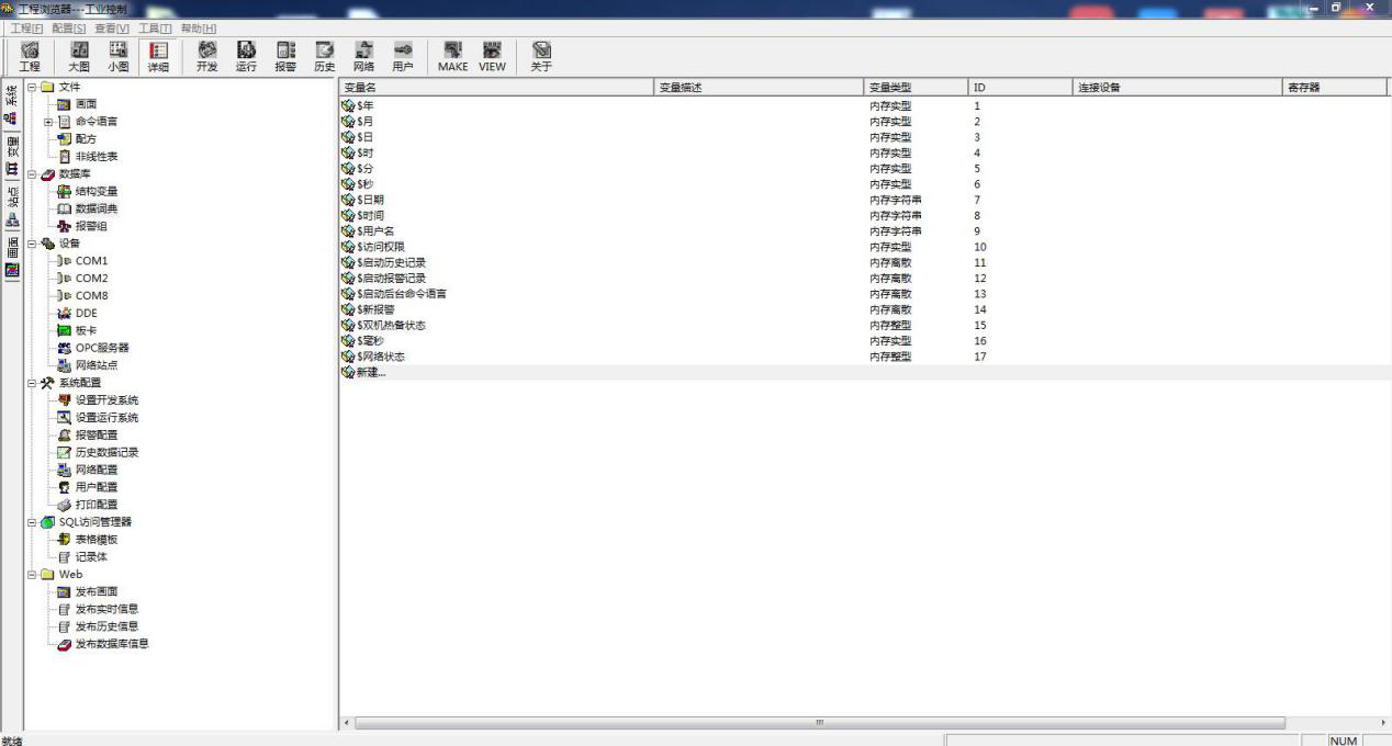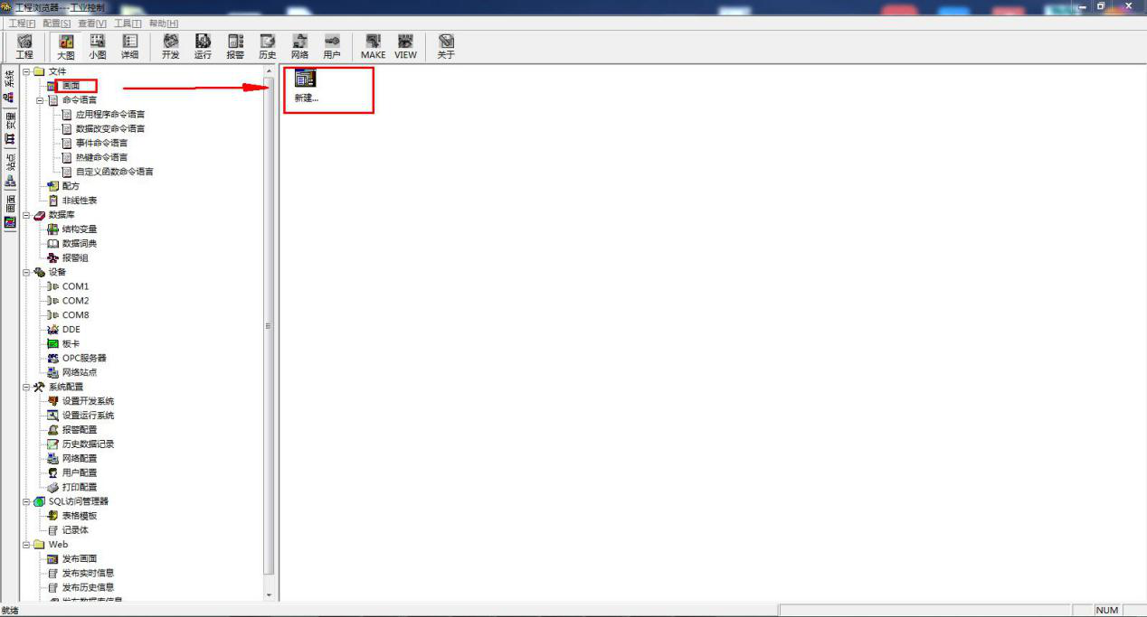 組態(tài)軟件編程部分。新建一個工程,然后點擊開發(fā)。