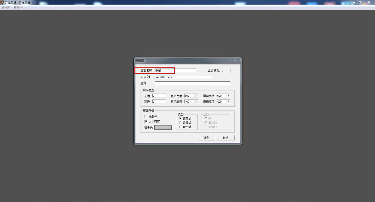 點擊畫面,新建一個畫面。畫面命名.然后雙擊,進入畫面編輯欄