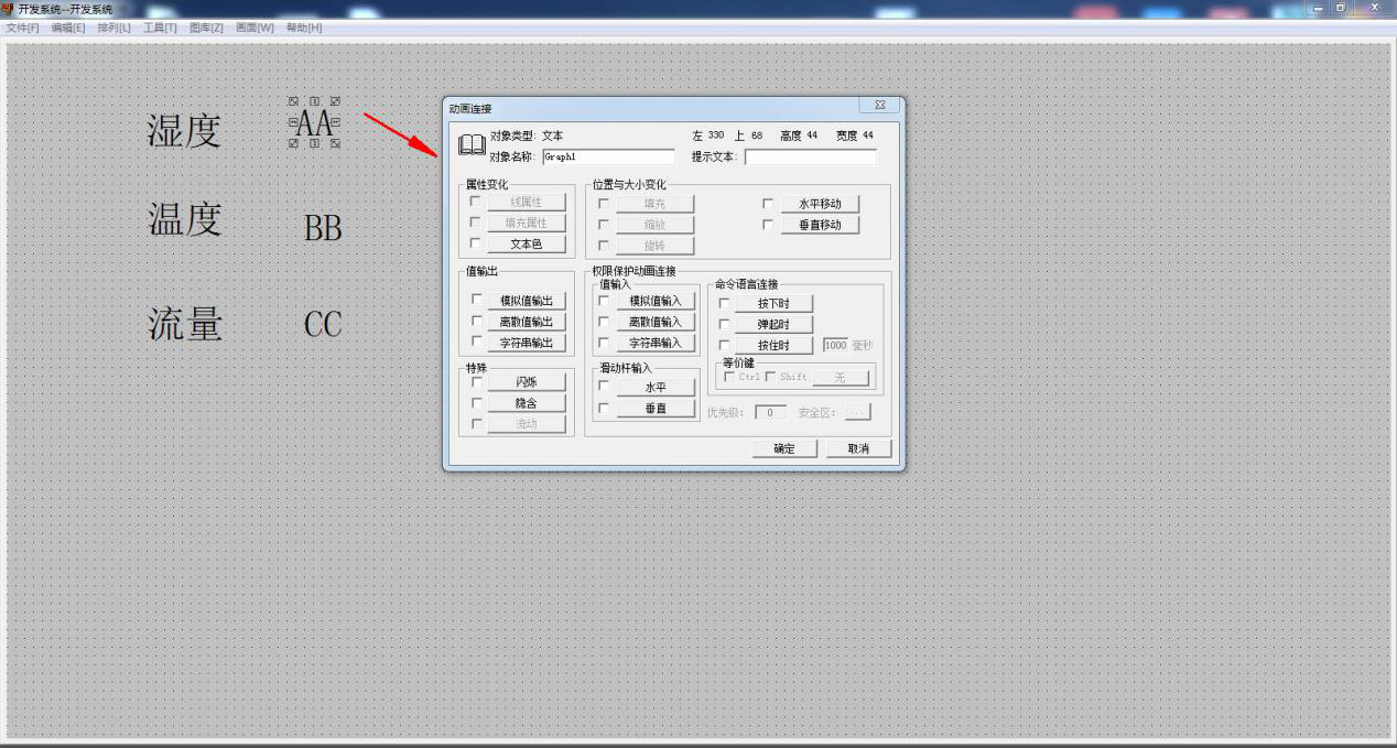雙擊其中一個文本 AA,然后點擊模擬值輸出,在表達式內(nèi)選擇變量名 為 MODBUSRTU3,然后確定。意思是MODBUSRTU3 的值是設(shè)備寄存器地址0中的數(shù)據(jù)值,然后將數(shù)值 傳到畫面AA