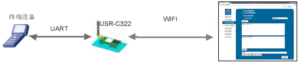 USR-C322支持WEBsocket透傳,模塊作為webserver,端口8000。從串口到網(wǎng)頁只支持Websocket ASCII碼透傳。最多支持4個client連接,當連接數(shù)超過4個后,模塊自動關閉最先建立的socket連接。網(wǎng)頁源碼是公開的,用戶可以自己修改網(wǎng)頁實現(xiàn)自己的特殊網(wǎng)頁需要,升級自定義網(wǎng)頁請參考軟件設計手冊網(wǎng)頁自定義功能描述。模塊只有UART0串口支持此模式。