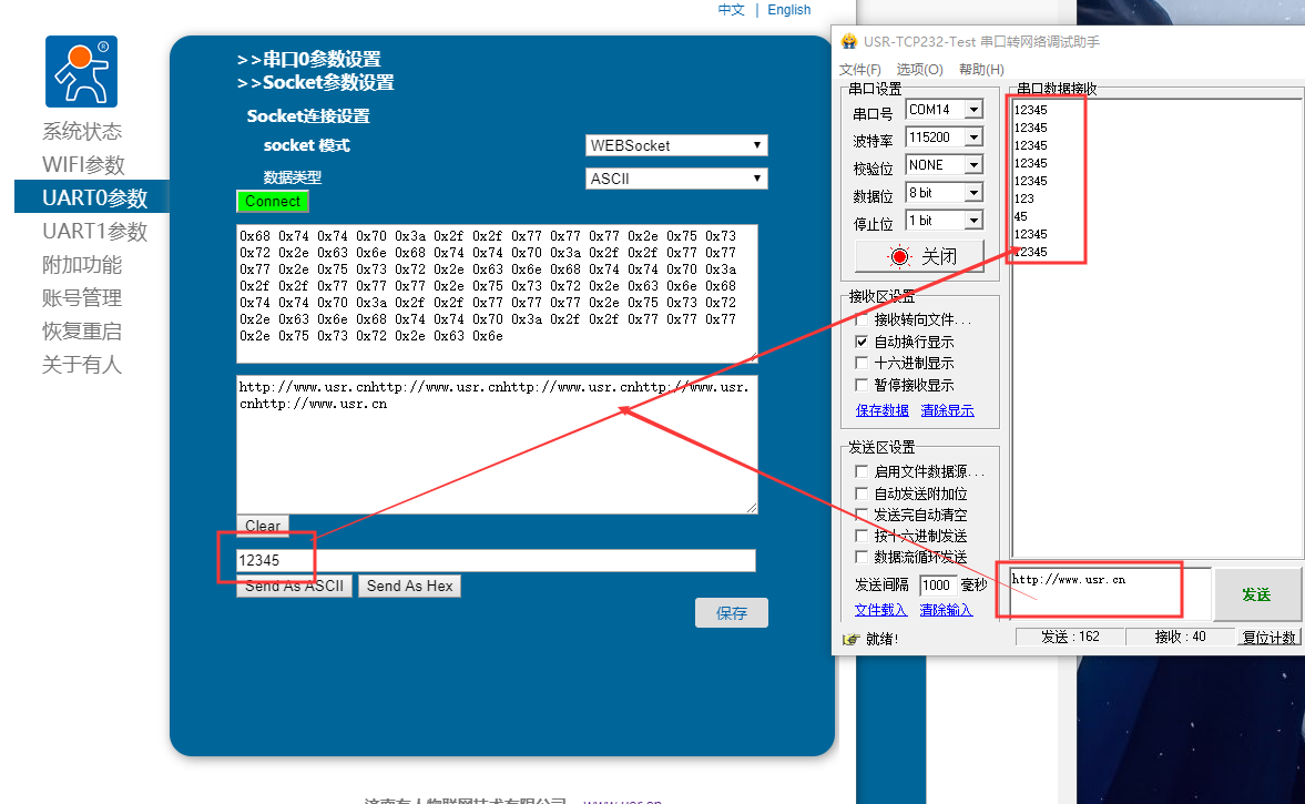 4. 從串口端發(fā)送數(shù)據(jù)到WiFi模塊網(wǎng)頁端
