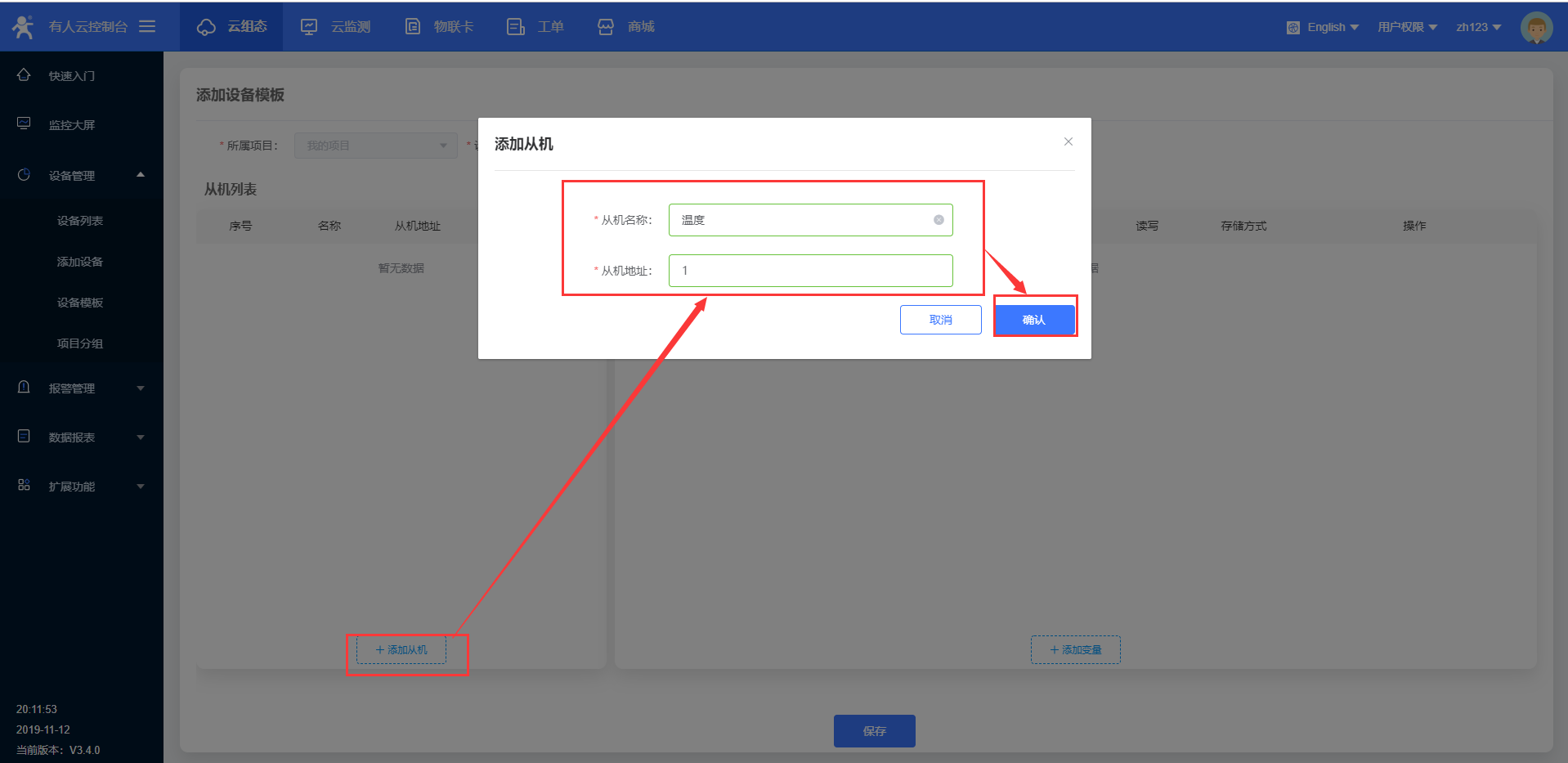 15、在有人云界面點(diǎn)擊設(shè)備名稱(chēng),可以看到剛才添加的從機(jī)變量;