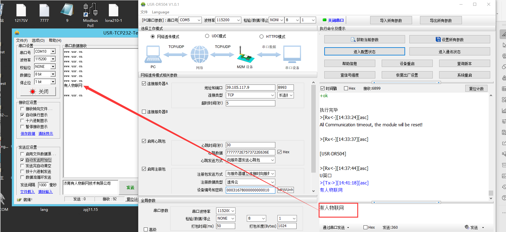 2、504串口通過USB轉(zhuǎn)485接到電腦端,裝上sim卡,接上天線,上電。