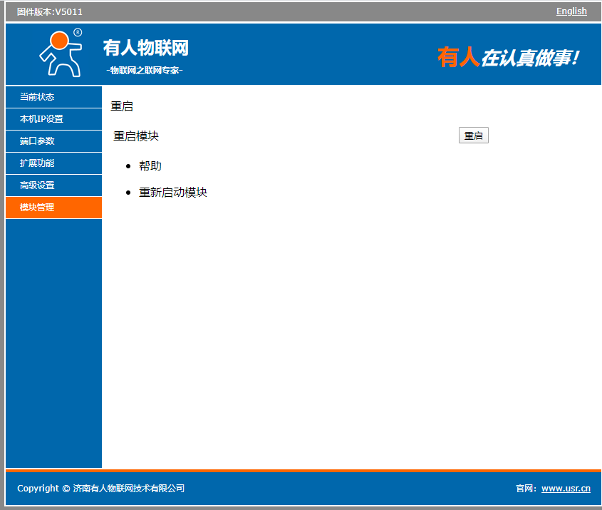 7、在“模塊管理”處重啟模塊。重啟成功之后會提示“重啟成功”。