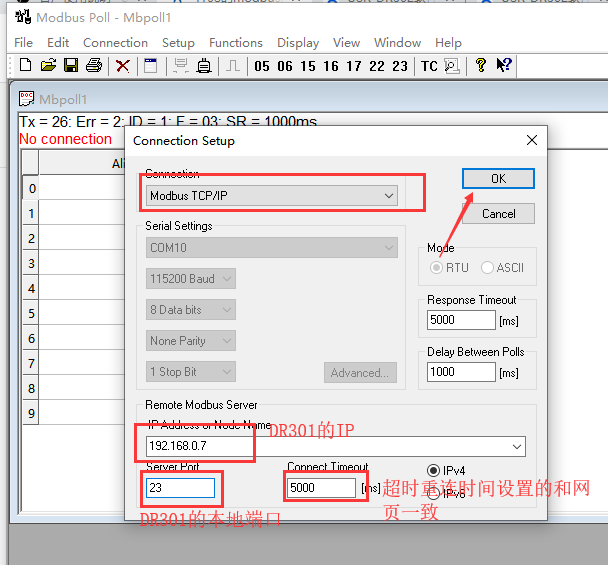 二、實物連接:DR301網(wǎng)線直連PC,串口線直連PC