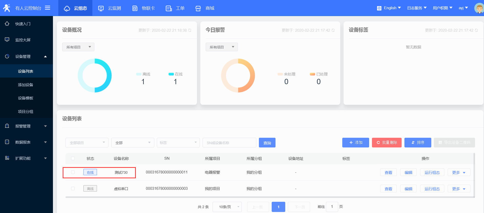 點(diǎn)擊設(shè)備名稱可以查看有人云成功顯示數(shù)據(jù)